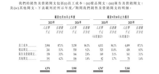 2025年前三季度,公司研发费用达1517.8万元,同比增长60%;销售费用为516.8万元,同比增长8%。费用攀升与员工薪酬上涨密切相关。同期,研发人员员工成本740.5万元,同比增长42%;销售人员员工成本449.9万元,同比增长12%。